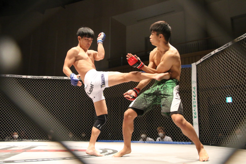 キックボクシングがバックボーンの濱田(左)は伊藤に三日月蹴りを決めて勝利