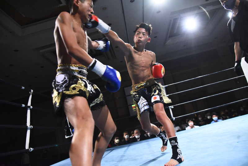 12歳の西村利月(左)に判定勝ちした13歳の翔力(右)