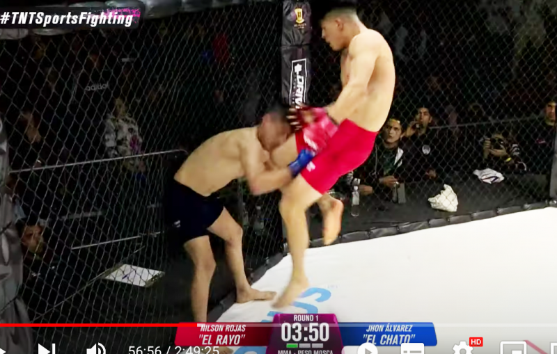 戦慄の飛びヒザ蹴りKO!(TNT Sports Chile公式YouTubeより)