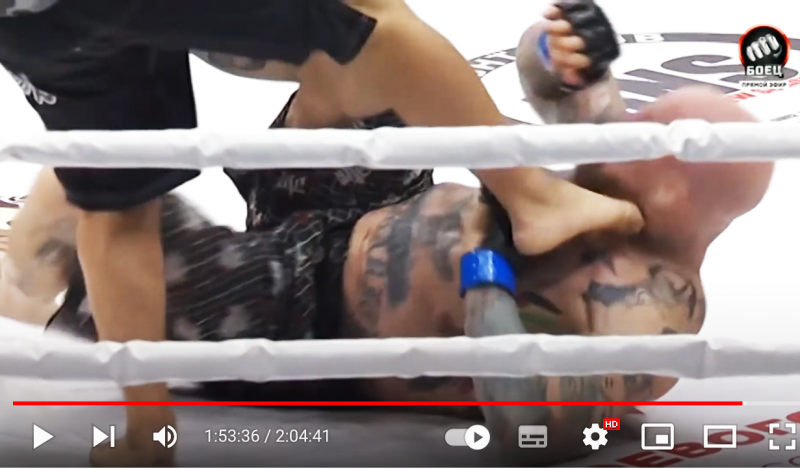 蹴りが首元に当たっている(Спорт вне политики公式YouTubeより)