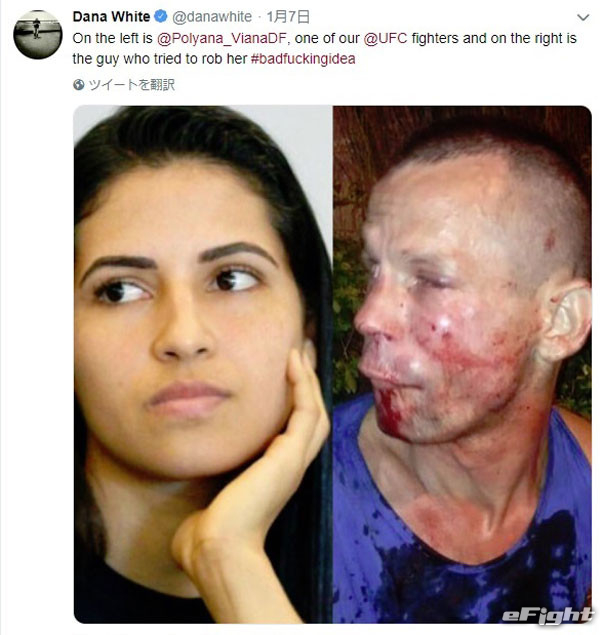ダナ・ホワイトUFC代表がSNSにアップしたヴィアナ(左)とボコボコにされた強盗(右)の写真@danawhite