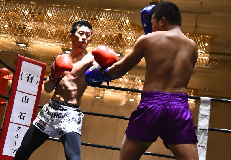 ガチンコエキシでCHU(右)とボクシング対決の横山(左)