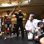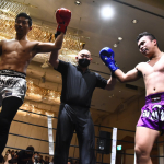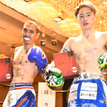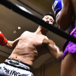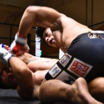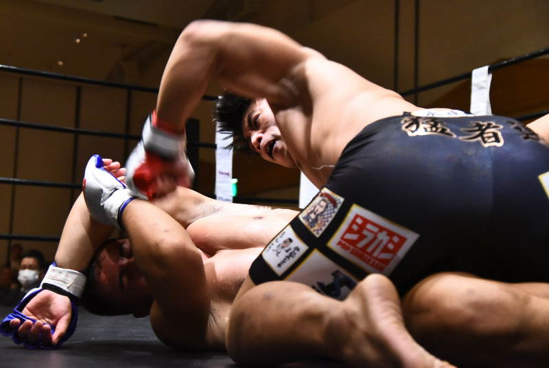 豪快なパウンドで安楽(下)を沈めた八木(上)