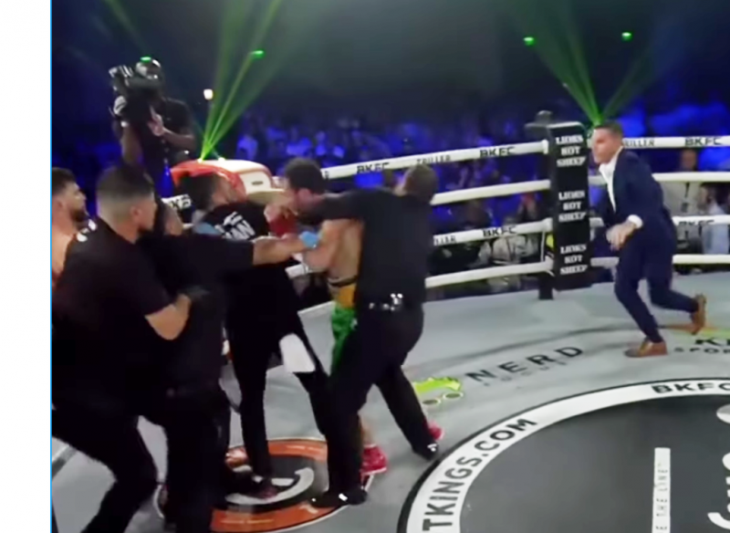 3,レフェリーが首を持って制圧、スーツ姿のBKFC代表もリング上に上がり制止へ動く@bareknucklefc