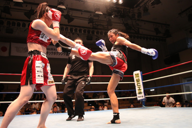 ロックナムは強烈なミドルキックで☆SAHO☆の動きを止めにかかった