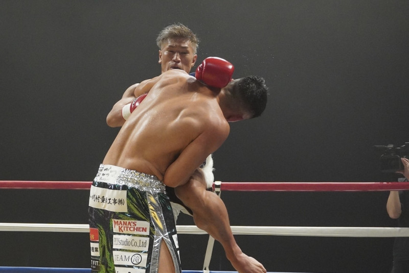 城戸のヒザ蹴りが突き刺さる