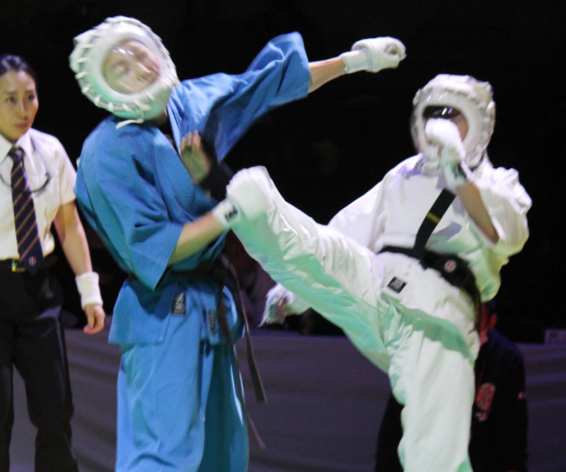 上段前蹴りでプレヴジャブのアゴを捕えた大倉
