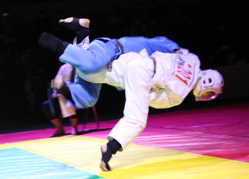 柔道出身者ならではの豪快な内股を決める内藤