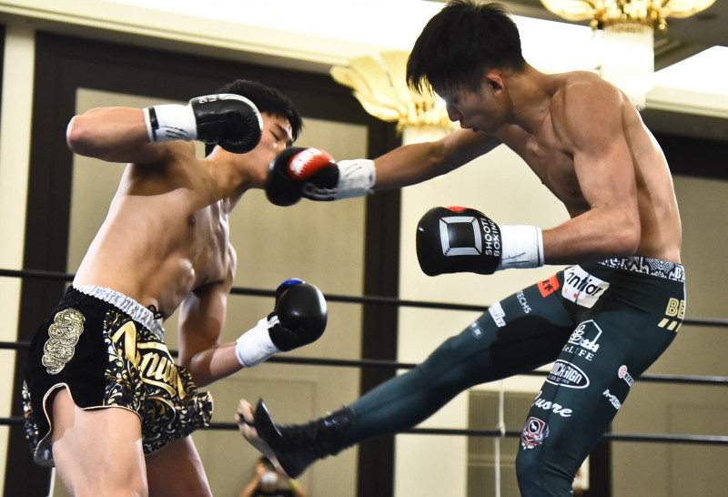 パク・ヒョンウ(左)をローで追い込む山田彪太朗(右)