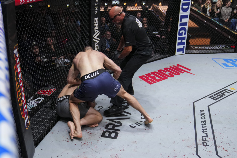倒れたシェフェルにデリアが追撃のパウンド!©️PFL