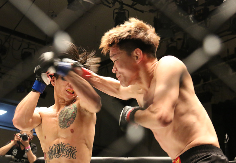 内藤(右)が鋭い打撃をヒットさせて勝利