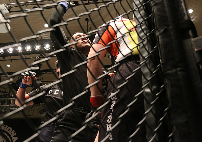 パンチが入り、レフェリーストップ