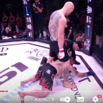スキンヘッド・眉毛全剃り男、ダウンした相手の上をまたぐシーン@mma_series