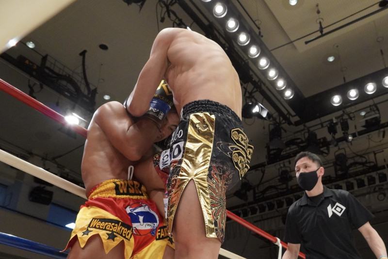 ヒザ蹴りを突き上げる鈴木