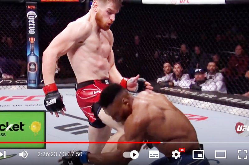 シャバージアンが飛びヒザ蹴り!(UFC公式Youtube)