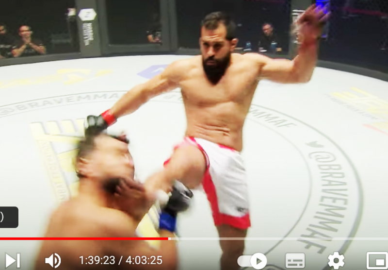 衝撃の顔面前蹴りKO!(BRAVE CF公式YouTubeより)