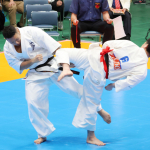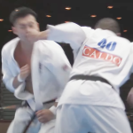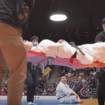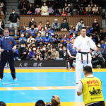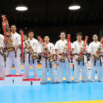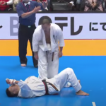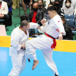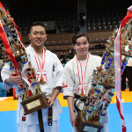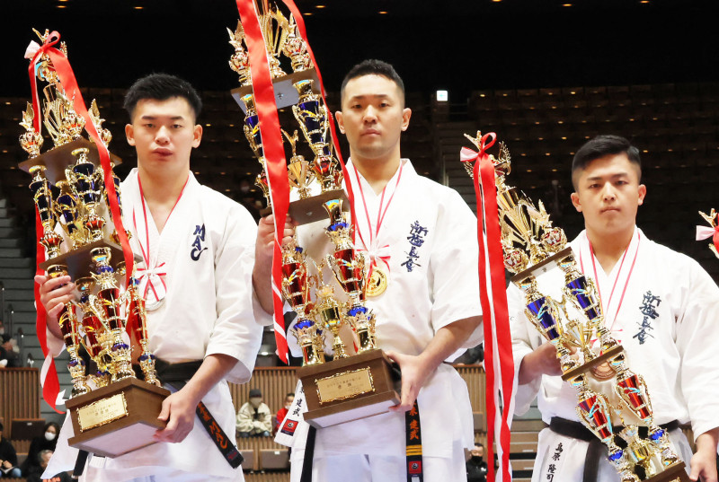 優勝の入来(中央)準優勝の後藤優太(左)は準決勝で反則の顔面殴打を受けドクターストップ、唇が大きく腫れる。右は3位の鳥原 隆司