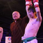ラーメン☆TSUBO(右)が引退試合で渾身のパンチ