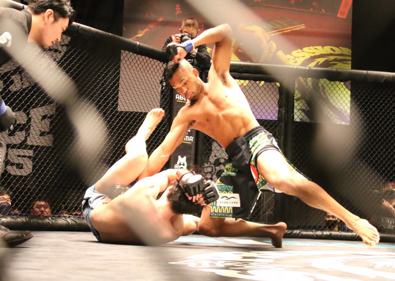 新人王決定トーナメント ウェルター級決勝戦はエフェヴィガ雄志(上)がクアト驎(下)をパウンドで下した