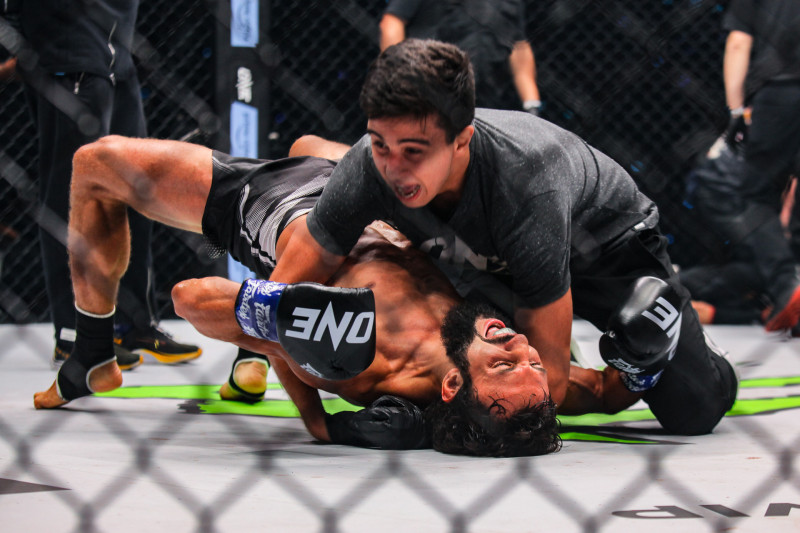 劇的なKOにマットに倒れ込みながら喜ぶアラゾフ©️ONE