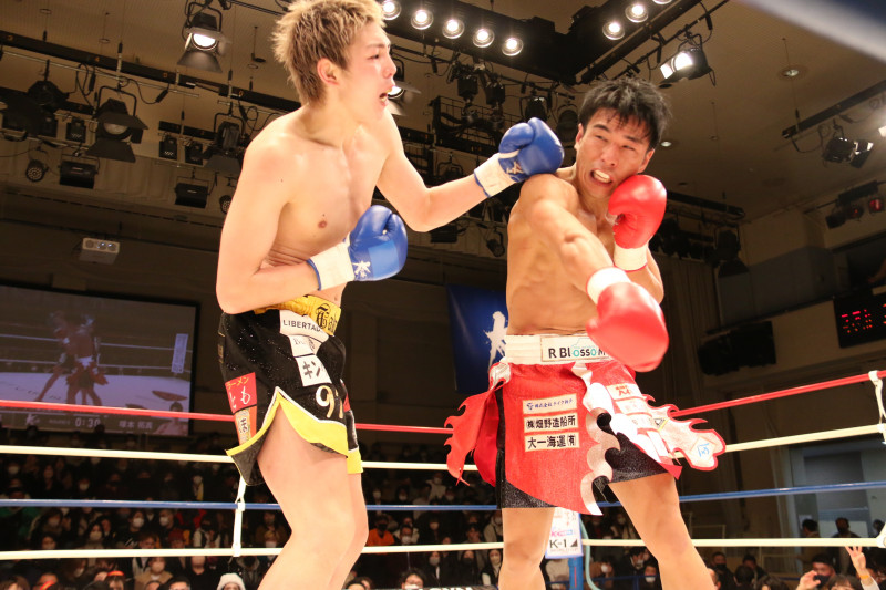 大野(右)はパンチに打ち合いに持ち込もうとした