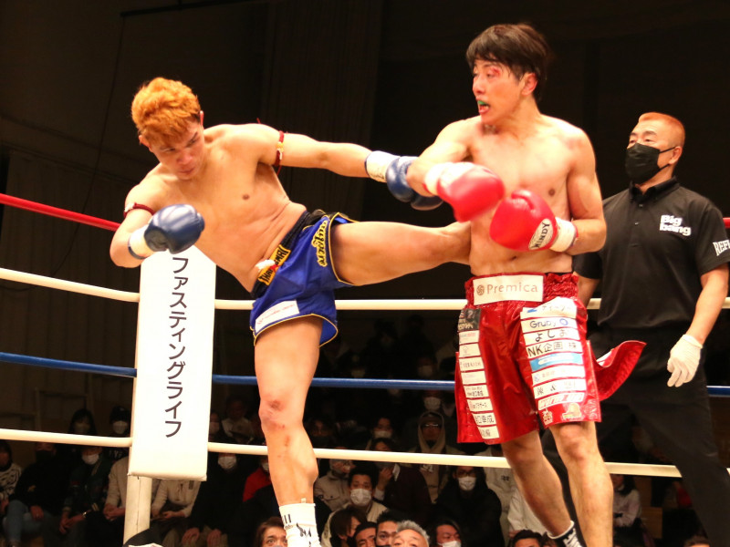 山際(右)はプライチュンポン(左)の蹴りを受けて判定負け