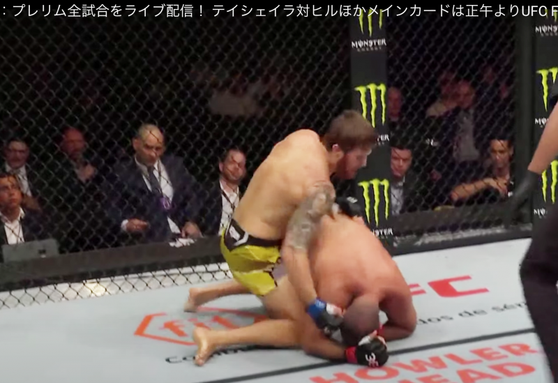 ダウン後のパウンドもテンプルに!これでレフェリーがストップ(UFC JAPAN 公式YouTubeより)
