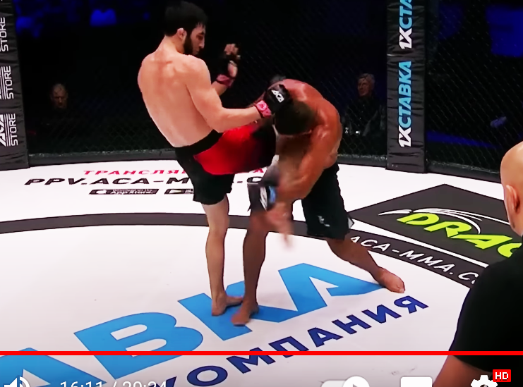 戦慄のボディヒザ蹴りKO!(ACA MMA公式YouTubeより)