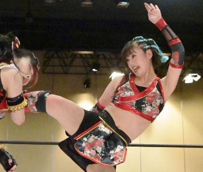 蹴り技を繰り出す長野じゅりあ(右)、惜しくも敗退となった