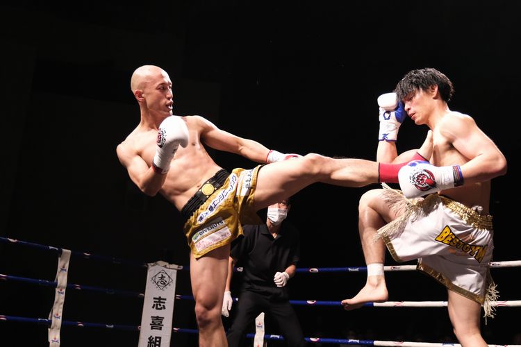 蹴りを放つ引退試合となったワンパンマン浦野