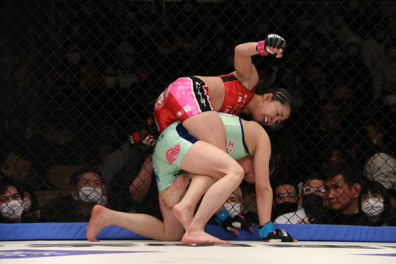 しなしは、バックからパンチを放つ