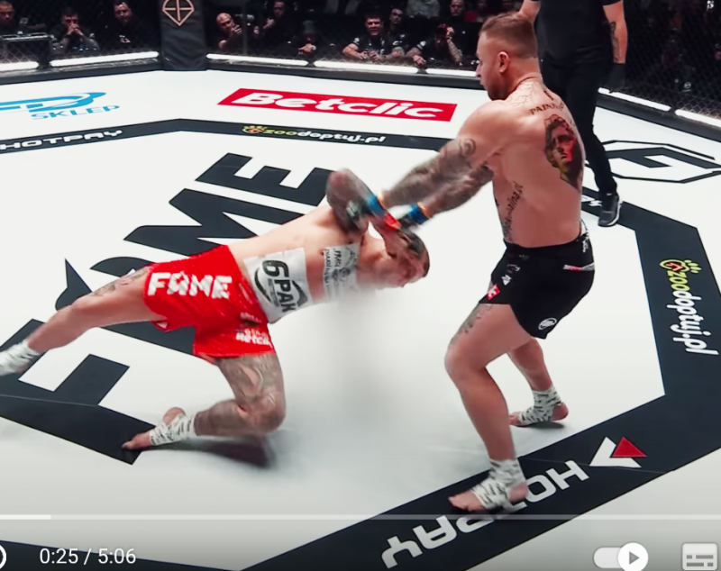 片手で受け身した瞬間(FAME MMA公式YouTubeより)