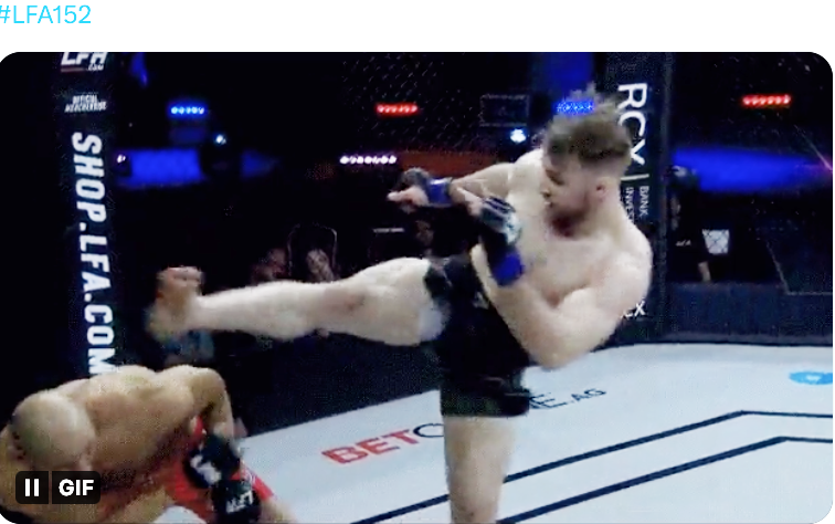 最初のハイキックはかわされるが...@Grabaka_Hitmanより