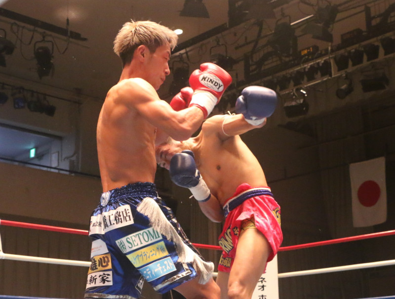 髙橋(左)は、この左ヒジでダウンを奪い、さらに切り裂いてとどめを刺した