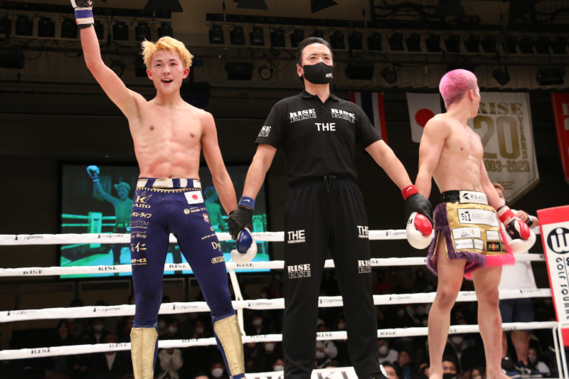 魁斗(左)は梅井(右)から判定勝ち