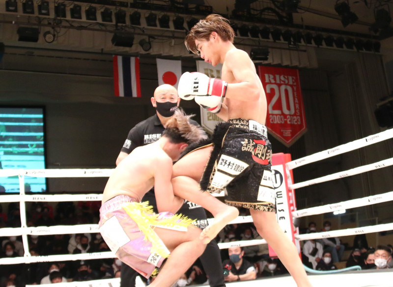 長谷川海翔(右)は黒田直也(左)からTKO勝ち