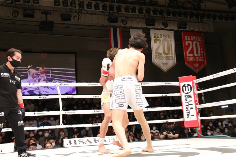 松本のパンチで空龍がダウン
