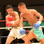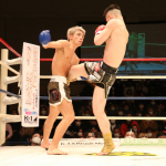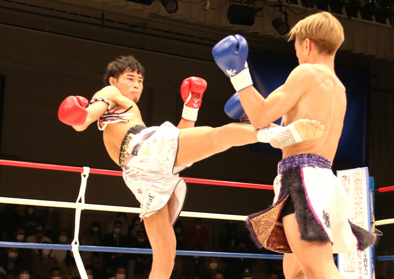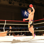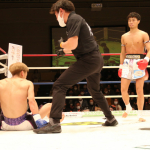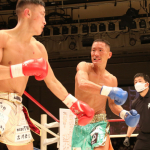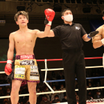 池田(左)は松谷(右)をKOして二度目の防衛に成功