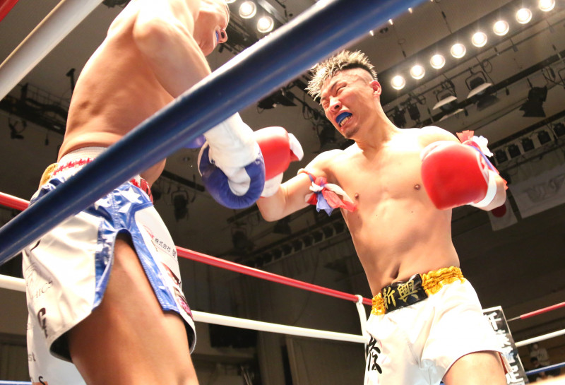 山浦(右)はTAKUYA(左)から判定勝ちを収めて再起