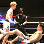 大田は2R、右のパンチを決めて大翔を転倒させた。スリップダウンの判定