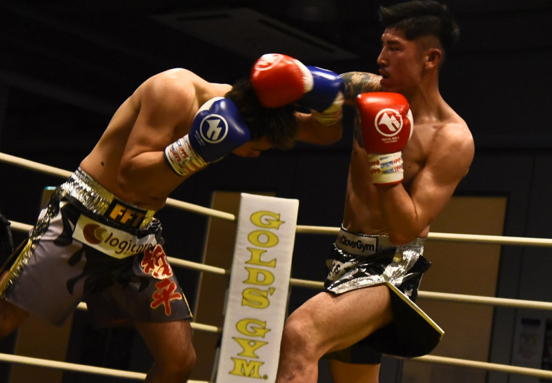 右ストレートで和田哲平(左)からダウンを奪い、判定勝ちした石川泰市(右)