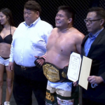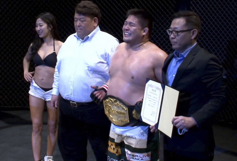 GRACHAN無差別級トーナメントで優勝し、ベルトを巻いた荒東 怪獣キラー 英貴(右から2番目)