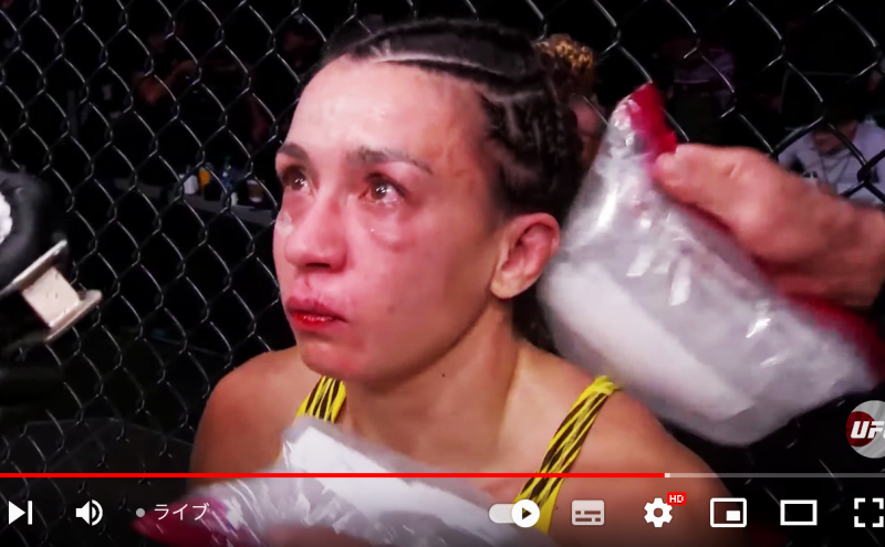 1R終了時で既に目の下が腫れている(UFC JAPAN公式YouTubeより)
