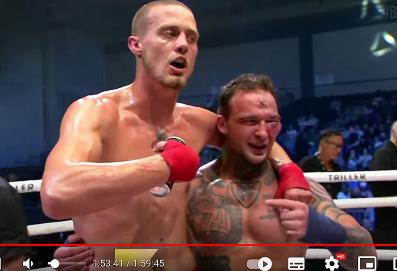 なんとリーチ差30cm!2m男がジャブ連発で相手の顔面をボコボコに(BKFC公式YouTubeより)