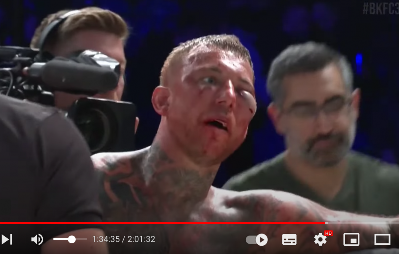 カッシディーの左目下が大きく腫れ上がる(BKFC公式Youtubeより)