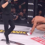 ムサエフの右に合わせてシャブリーがカウンターの前蹴り@bellatormmaより