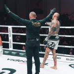 セコンドのタオル投入に納得いかない様子のトレド©️GLORY