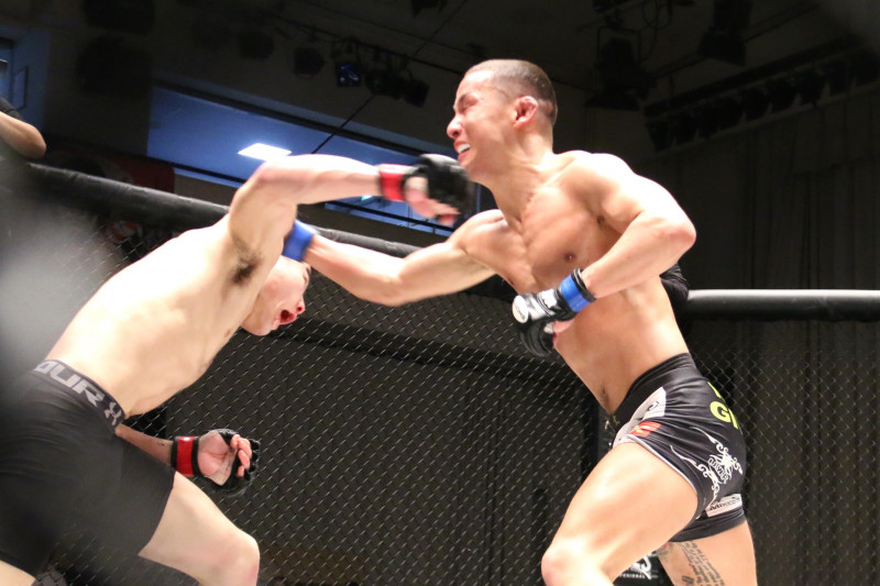 新井(右)と関口(左)のパンチが交錯