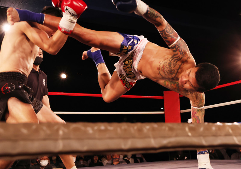 スーパーボーイは竜巻蹴りで光成に襲いかかる