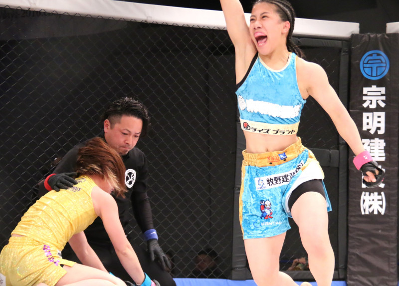 須田(右)が桐生(左)から一本勝ち